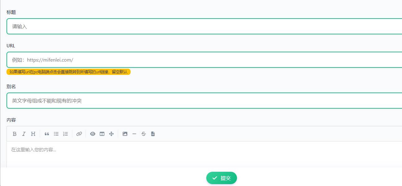 url 如果填写就在pc点底部快速链接显示,一般都是跳转到当前的内容/dan/别名.html或者任意都可以,