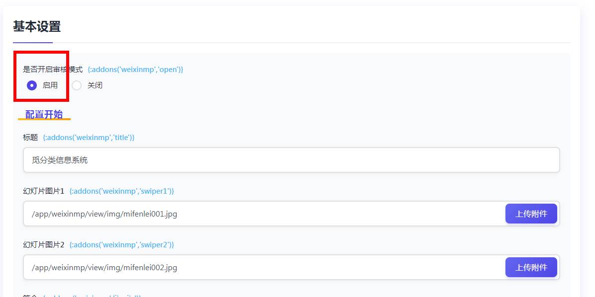 在弹出的配置页中,勾选 开启审核模式 选项