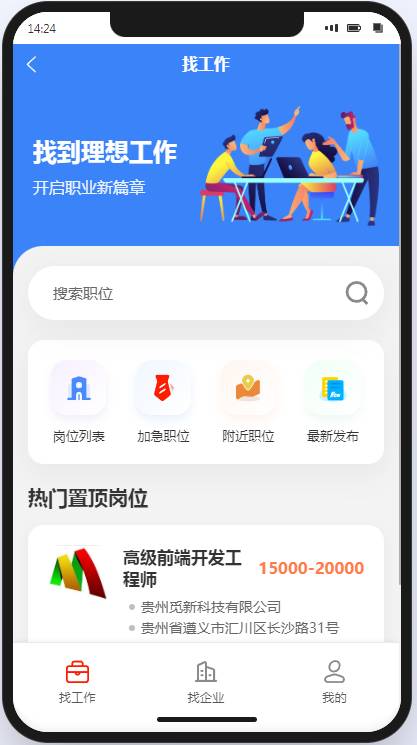 - 岗位查找:提供多维度岗位筛选(加急岗位、置顶岗位、附近岗位、最新发布),支持关键词搜索,精准匹配求职需求。