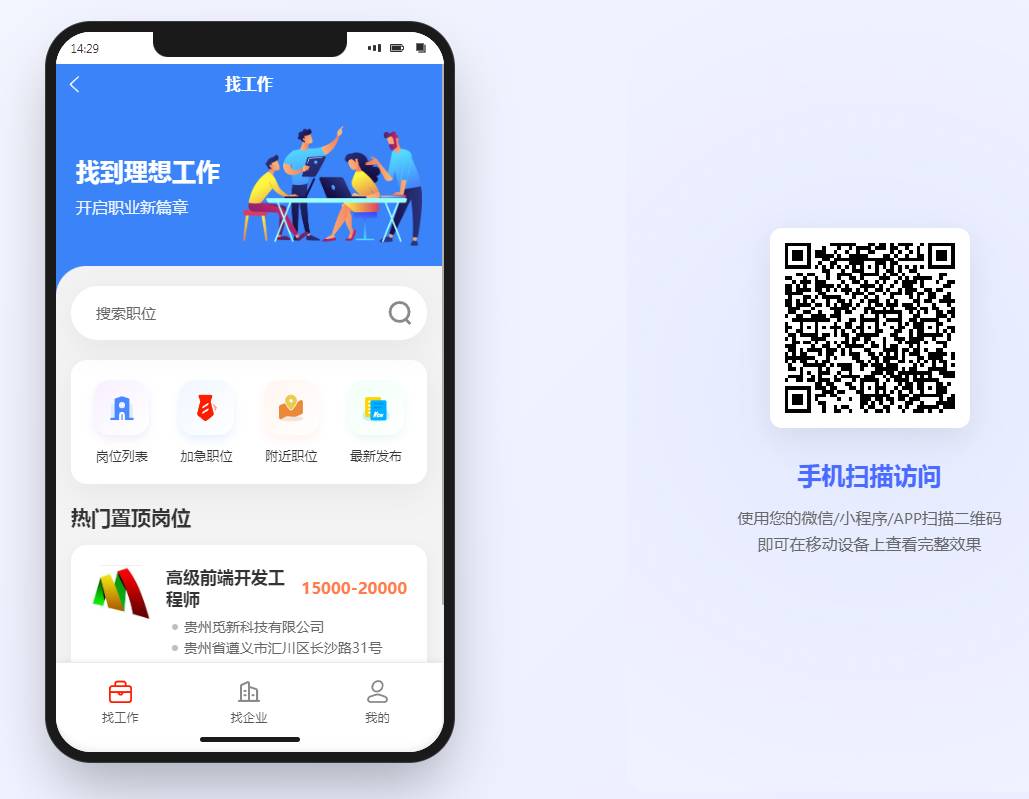 - 企业查找:支持按「附近企业」「人气排序」「行业类别」等条件筛选企业,快速定位目标雇主;