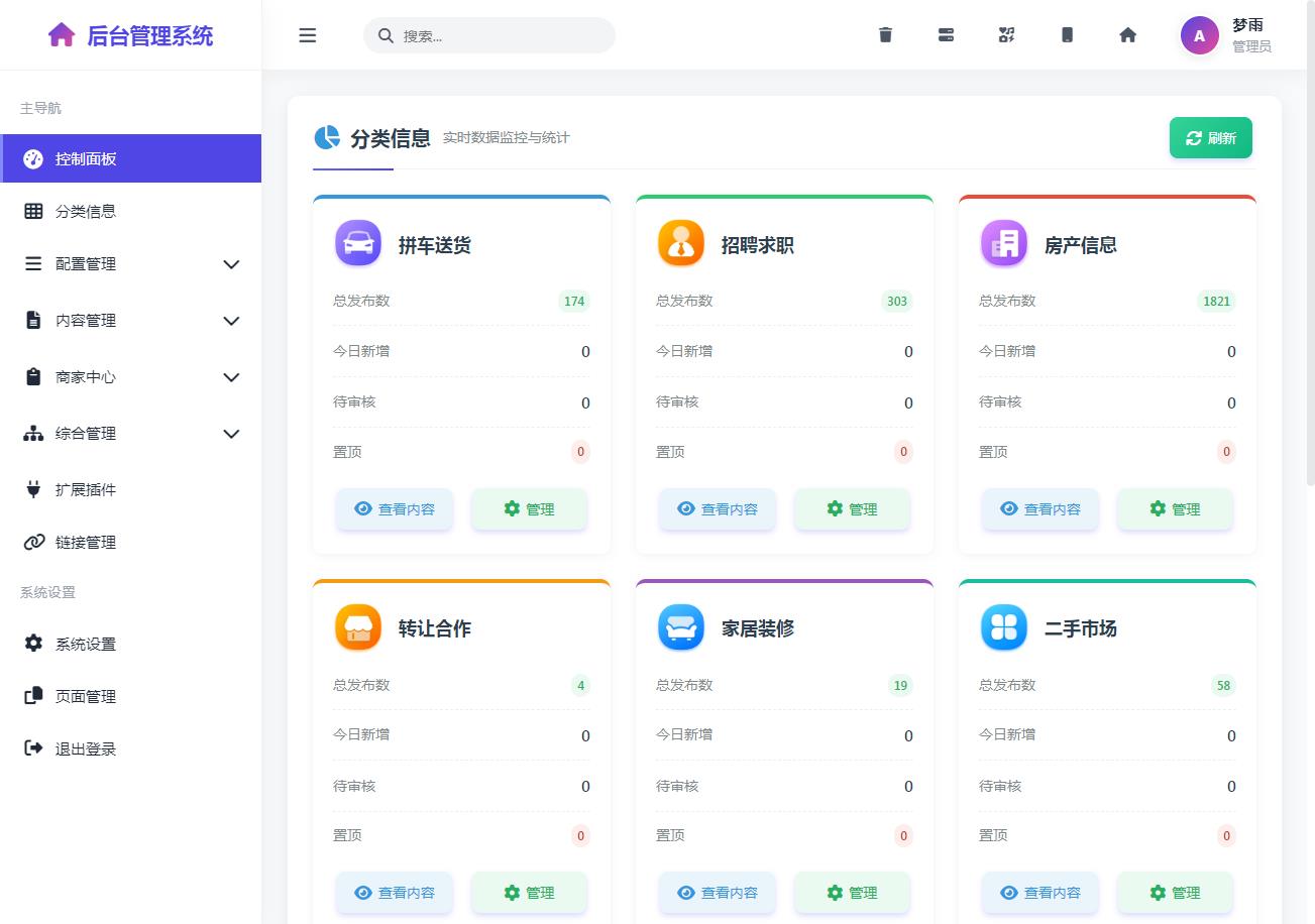 基于Web的后台管理系统,安装后即可使用,提供用户管理、系统配置等全面功能。